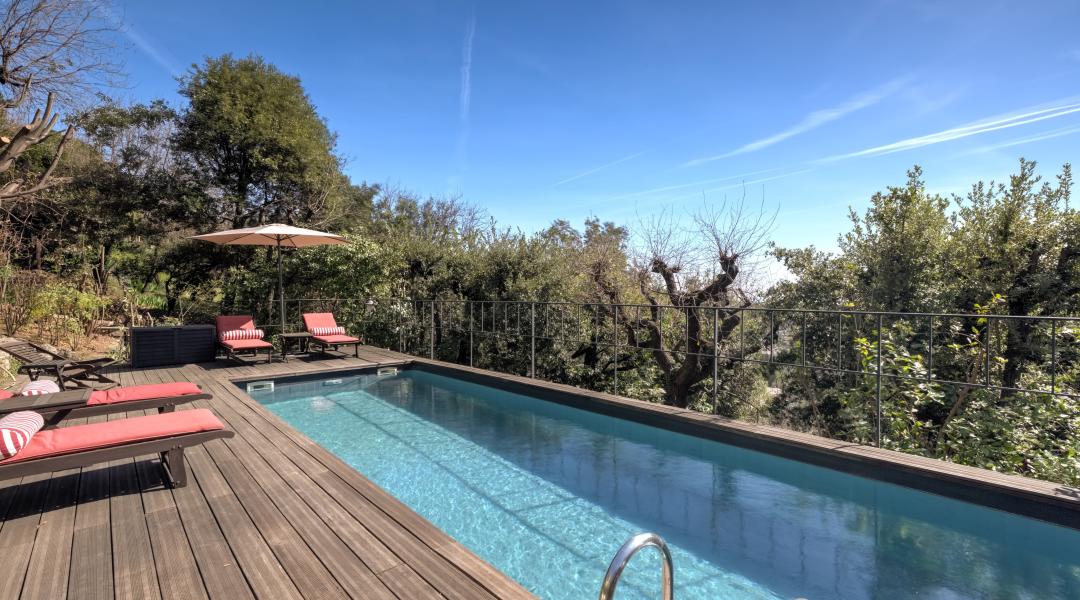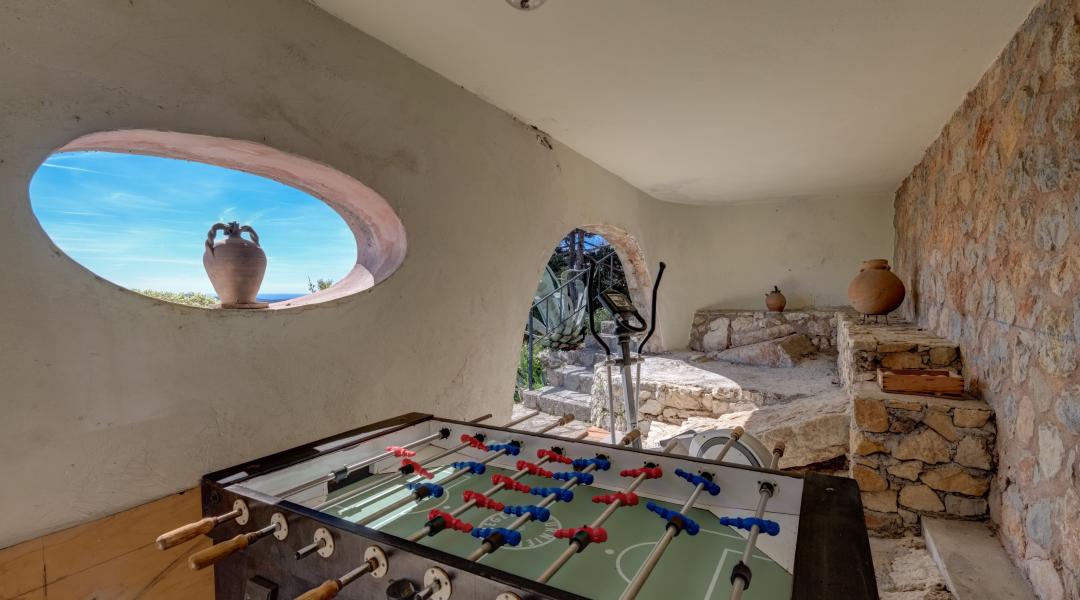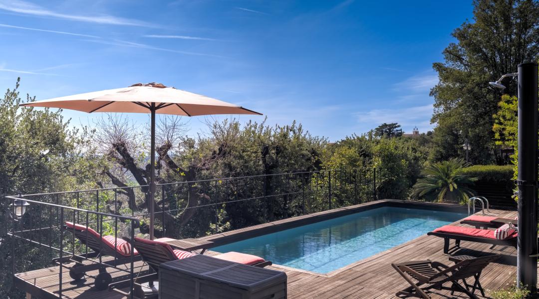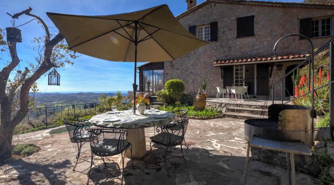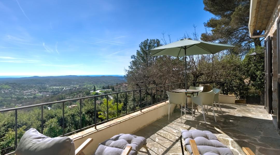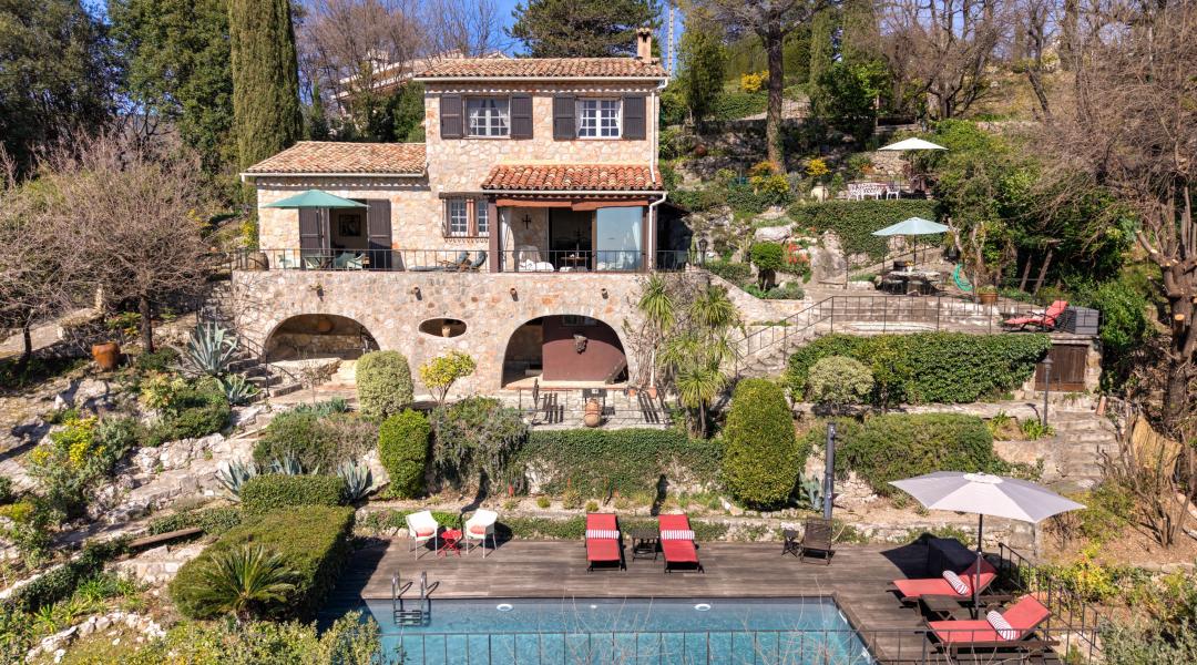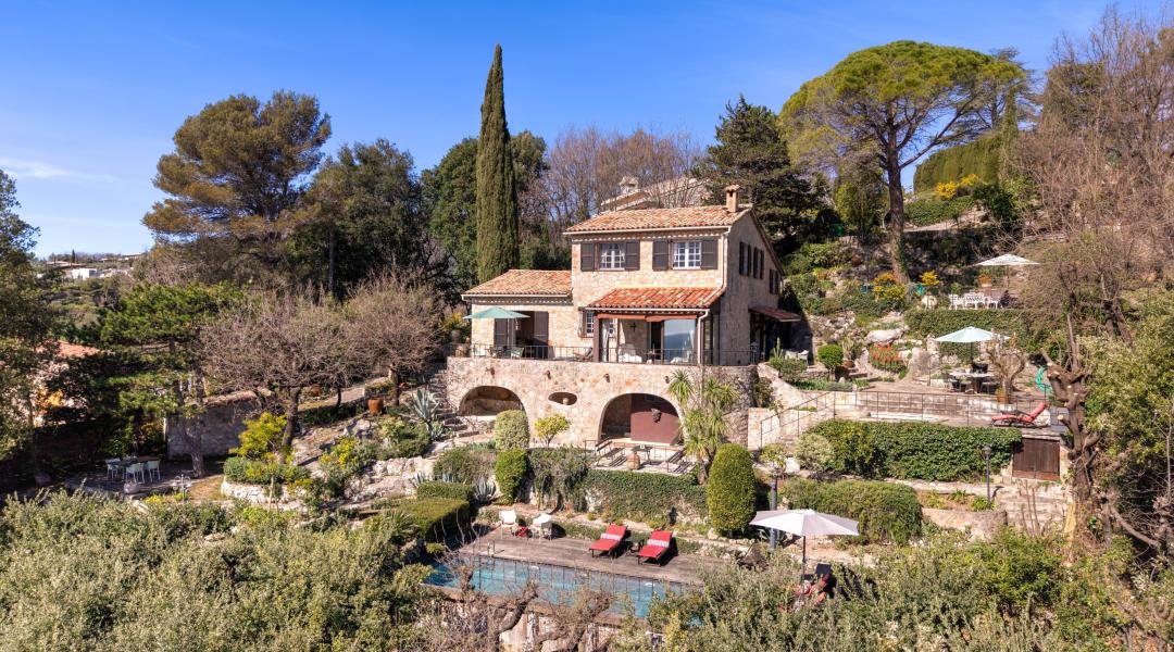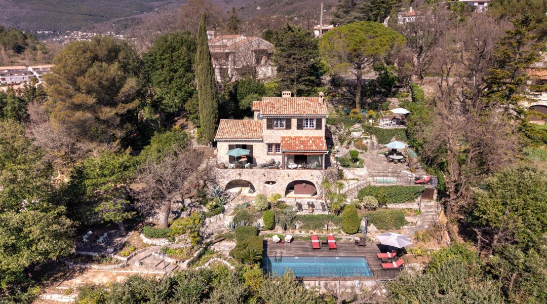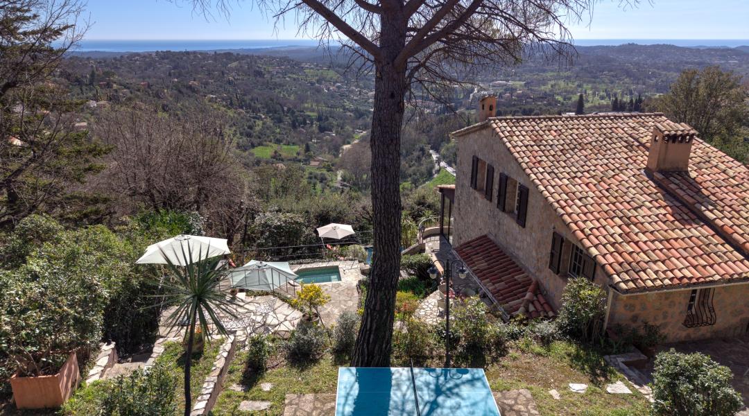 Dit mooie natuurstenen huis ligt op een perceel van 3000 vierkante meter in de regio Grasse. De ligging op een heuvel biedt een adembenemend uitzicht over de vallei tot aan de kust van de Côte d'Azur. Het zwembad ligt iets onder het huis en is uitgerust met een tegenstroomsysteem. Op verzoek kan het verwarmd worden. Er is ook een grote whirlpool. Je kunt hier ook genieten van het uitzicht. Er is een groot terras bij het zwembad en vele andere terrassen, zithoeken, eethoeken en ligstoelen bij het huis en in de tuin... Iedereen zal hier een gezellig plekje vinden om te relaxen, in de zon of in de schaduw. Privé jeu de boules baan, tafeltennis, tafelvoetbal, barbecue en ruime parkeergelegenheid. Daarnaast kan je trainen in een open fitnessruimte met hometrainer en stepper.